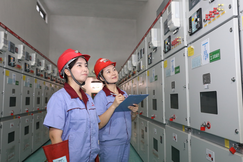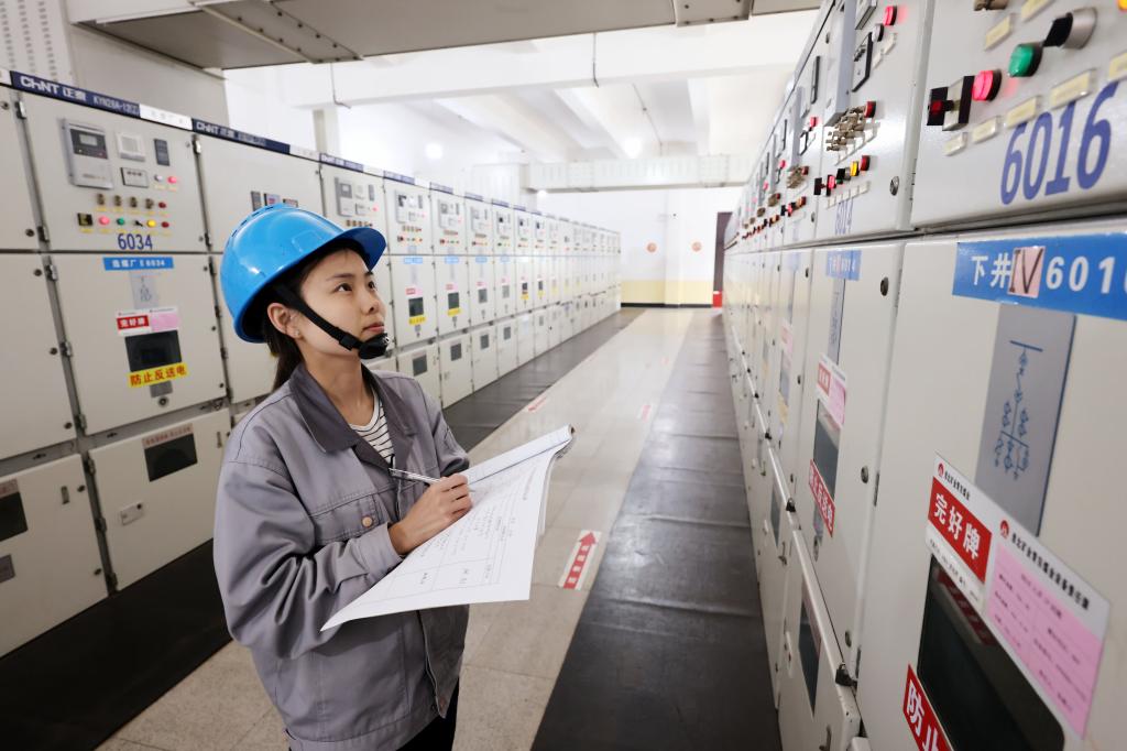 該礦保運區(qū)35KV變電女工謝妍妍、張海玲進行崗位操作。