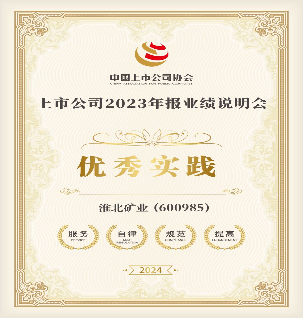 近日,中國上市公司協(xié)會發(fā)布“上市公司2023年報業(yè)績說明會最佳及優(yōu)秀實踐”榜單,淮北礦業(yè)控股股份有限公司憑借高質(zhì)量的年報業(yè)績說明會,在5000余家上市公司中脫穎而出,榮獲“2023年報業(yè)績說明會優(yōu)秀實踐”獎項。