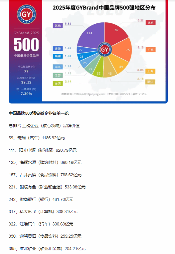 近日,GYBrand全球品牌研究院發(fā)布2025年度中國500最具價值品牌名單,淮北礦業(yè)以品牌溢價204.21億元,再次榮登榜單,位列395位。
