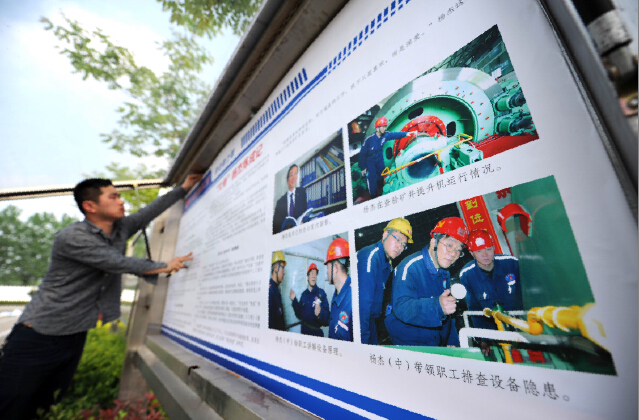 袁店二礦工作人員正在趕制典型人物燈箱牌。五一期間,該礦把“全國重大宣傳典型人物”楊杰的先進(jìn)事跡制作成宣傳畫,展示在工廣主干道,引導(dǎo)職工學(xué)習(xí)先進(jìn)、爭當(dāng)先進(jìn)。