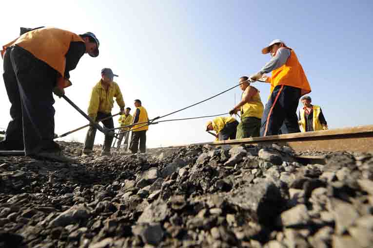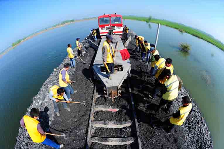 又是一年汛期“三防”季,在鐵運(yùn)處朱仙莊至王橋鐵路專用線上,正是一幅繁忙的施工搶修景象,朱仙莊領(lǐng)工區(qū)全體職工正在對(duì)塌陷區(qū)段線路進(jìn)行集中會(huì)戰(zhàn),確保安全度汛。