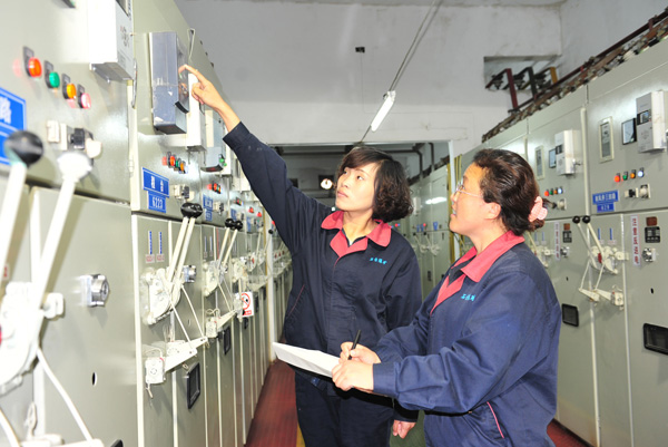 圖為:該公司保運一區(qū)兩位女工正在變電所抄表巡檢。