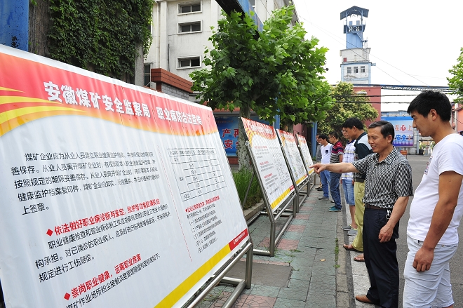 6月份是職業(yè)病危害防治宣傳教育月,朔里礦業(yè)公司按照《職業(yè)病防治法》、《煤礦作業(yè)場所職業(yè)病危害防治規(guī)定》、《用人單位職業(yè)病和配套規(guī)章及標準》,以及國家安監(jiān)局總局和集團公司相關(guān)指示精神,制作了職業(yè)病防治專題版板,加大職業(yè)病防治宣傳教育力度,吸引了一線職工學(xué)習(xí)。