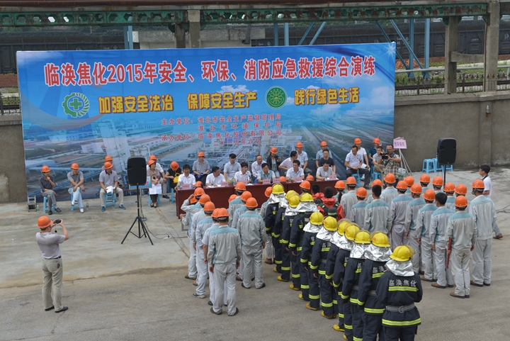 6月26日,臨渙焦化公司在甲醇車間重大危險源區(qū)域開展應(yīng)急救援演練?;幢笔邪脖O(jiān)局、環(huán)保局、濉溪縣環(huán)保局相關(guān)負(fù)責(zé)人觀摩了應(yīng)急救援演練。此次演練由臨渙焦化公司董事長、黨委書記王艷功擔(dān)任總指揮,副總師李輝擔(dān)任副總指揮。