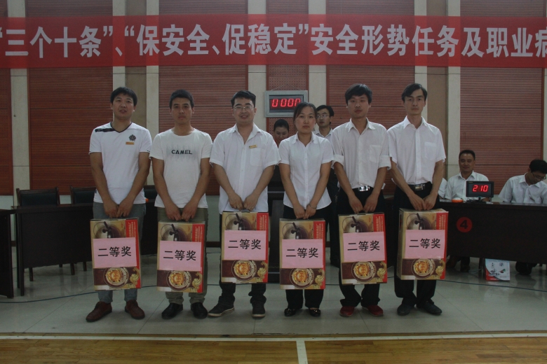 7月10日上午,臨渙礦在職工體育館舉行落實“三個十條”保安全保穩(wěn)定安全形勢任務(wù)及職業(yè)病防治知識現(xiàn)場征答賽,來自全礦各系統(tǒng)的6支代表隊參加了比賽。