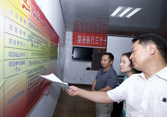 在楊莊礦新三樓會(huì)議室,礦黨委書記李慶軍代表礦黨政致歡迎詞,黨委副書記、紀(jì)委書記楊德良介紹了該礦近年來的黨建工作特別是黨建項(xiàng)目化管理的做法。為解決“黨建工作全方位融入”的難題,近年來,楊莊礦黨委圍繞安全、生產(chǎn)、經(jīng)營(yíng)中心,創(chuàng)新推出了以“四步推動(dòng)抓項(xiàng)目,三個(gè)層面抓落實(shí),五個(gè)結(jié)合促提升”為主要內(nèi)容的“435”黨建項(xiàng)目化管理新機(jī)制,黨建功能進(jìn)一步強(qiáng)化,“三個(gè)作用”在安全生產(chǎn)經(jīng)營(yíng)管理中得到有效發(fā)揮。開展黨建項(xiàng)目化管理活動(dòng)以來,各總支、支部共建立黨建項(xiàng)目160多項(xiàng),黨員和班組共建立390項(xiàng),激發(fā)了基層黨組織內(nèi)在活力。觀摩團(tuán)觀看了我礦制作的黨建項(xiàng)目化工作專題片及相關(guān)材料,對(duì)礦井的黨建項(xiàng)目化工作、民情日記工作給予了高度的評(píng)價(jià)。