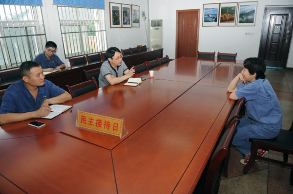 淮選廠針對煤炭市場下行,職工思想容易出現(xiàn)波動的實際,把“民主接待日”制度作為企業(yè)管理者體察社情民意、理順職工情緒、扶助弱勢群體的有效途徑,使職工群眾來訪訴求早了解、早介入、早調(diào)解,促使干群關系融洽,職工隊伍穩(wěn)定,為企業(yè)應對危機渡難關提供了堅實的保障。圖為:9月17日,該廠廠長鄭仁勇在民主接待日上為職工解疑釋惑。