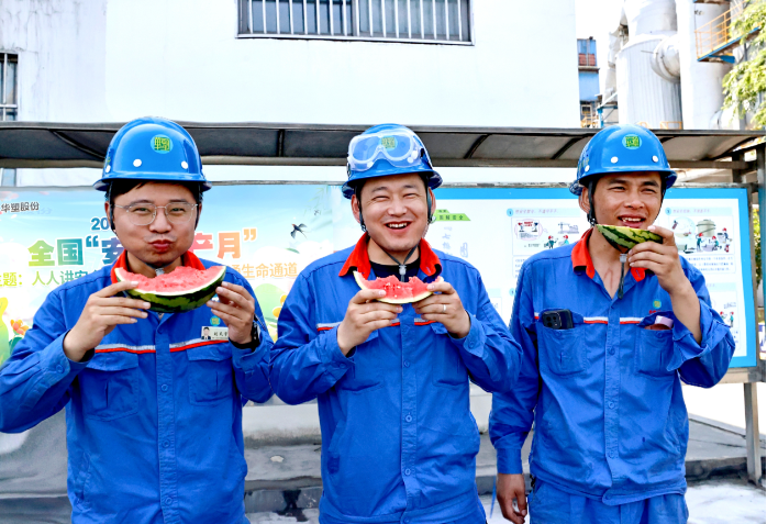 “這幾天連續(xù)高溫,公司送來的西瓜真是解暑又暖心?!?月12日下午,華塑股份水泥分公司設(shè)備員喬強(qiáng)強(qiáng)從水泥車間檢查回來滿頭大汗,手捧著大西瓜吃起來,臉上樂開了花。