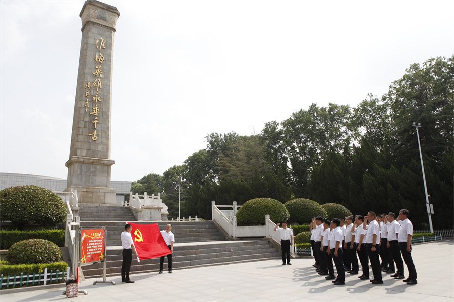 青山處處埋忠骨,何須馬革裹尸還。在淮海戰(zhàn)役烈士紀念塔前,黨員干部們拾級而上,佇立在紀念碑前肅立默哀,深切緬懷為中國人民解放事業(yè)英勇獻身的革命先烈,追憶老一輩革命家的豐功偉績。隨后,全體黨員鄭重舉起右手重溫入黨誓詞,大家目光堅定,面向鮮紅的黨旗,懷著深切敬意,用洪亮的聲音表達了一名共產黨員愛黨、愛國、愛人民的堅定決心。錚錚誓言,鏗鏘有力,把對黨忠誠化作勇往直前的強大動力。