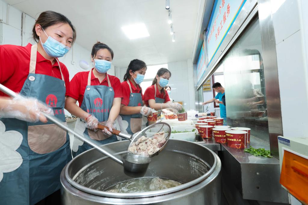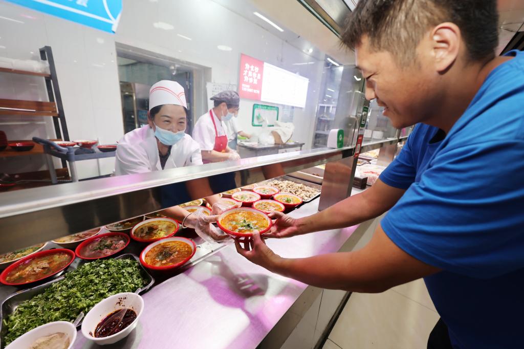 職工們陸續(xù)來(lái)到職工餐廳,當(dāng)一碗碗熱氣騰騰的羊肉湯端到面前時(shí),他們的臉上都露出了幸福的笑容。