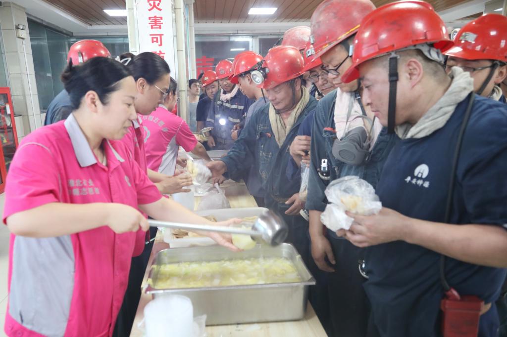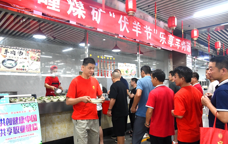 7月15日,入伏第一天,孫疃礦南北兩個(gè)職工餐廳里,空氣中飄蕩著濃濃的羊肉醇香,上中班的礦工師傅早已排起長(zhǎng)長(zhǎng)的隊(duì)伍,等待著享用免費(fèi)羊肉湯。