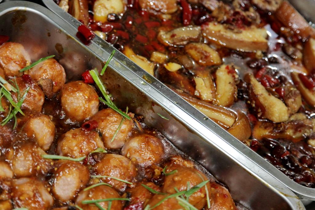 剛進(jìn)餐廳大門,往日就餐人數(shù)多出三分之一。隨著來(lái)回穿梭的人流,筆者來(lái)到各窗口前一一觀察起來(lái),4個(gè)午餐供應(yīng)窗口前,熙熙攘攘“擠”著不少人,有要一葷兩素的、有要兩葷三素的,只見穿戴整齊統(tǒng)一的工作人員面帶著微笑,忙的不亦樂乎,甚至顯得有些被這突然來(lái)襲的“門庭若市”弄得“措手不及”。再一看熱氣騰騰的快餐菜品,色澤鮮艷,搭配合理,從簡(jiǎn)單熟悉的芹菜、豆皮、大白菜再到1元一個(gè)的“獅子頭”、2元一份的小紅燒肉、3元一只的雞腿等等,都成為了熱銷菜肴。