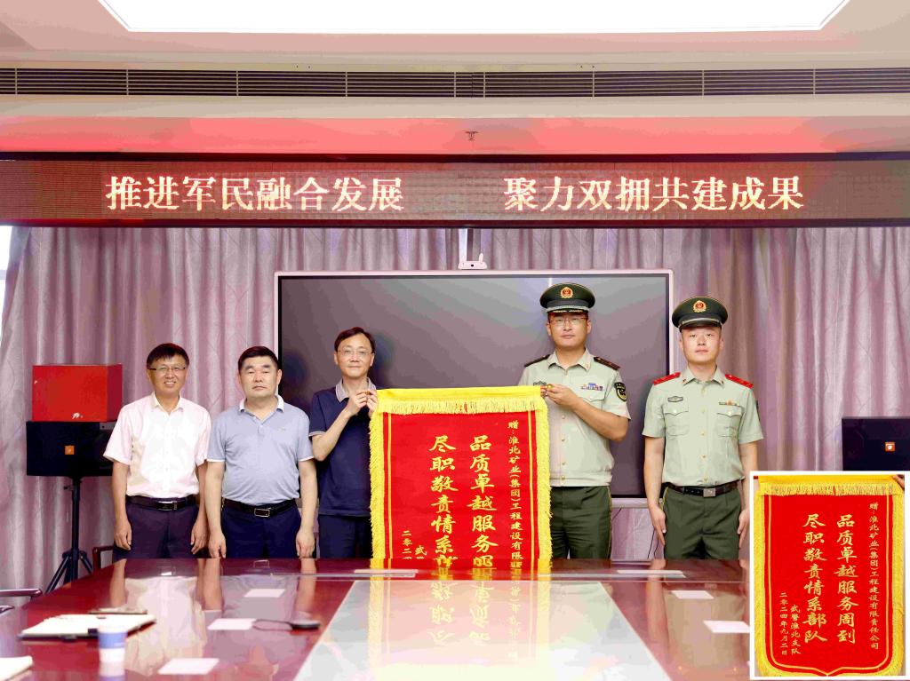 9月4日上午,武警淮北支隊保障處孫雙雙處長帶隊,將一面印有“品質(zhì)卓越服務周到,盡職盡責情系部隊”的錦旗送到了工程建設公司,對該公司在服務保障部隊營地建設工作中的鼎力相助表示感謝。