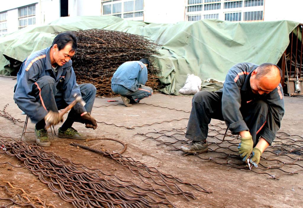 為保證安全生產(chǎn),在煤礦井下生產(chǎn)過程中使用的鋼絲繩磨損達(dá)到一定程度就會被強(qiáng)制報廢。這些鋼絲繩不能再使用后,通常是回收上井,當(dāng)做廢品材料來處理。楊柳煤業(yè)面對建礦以來堆積如山的廢舊鋼絲繩,不斷拓展思路,思考新辦法,在充分論證的基礎(chǔ)上組織機(jī)廠統(tǒng)一加工改造,將鋼絲繩分段切割后拆分成6股,編織成網(wǎng),再送到井下代替部分鋼笆網(wǎng)使用,對煤巷兩幫進(jìn)行支護(hù),節(jié)省了大筆材料投入,讓這些廢舊鋼絲繩繼續(xù)發(fā)揮出了新價值。