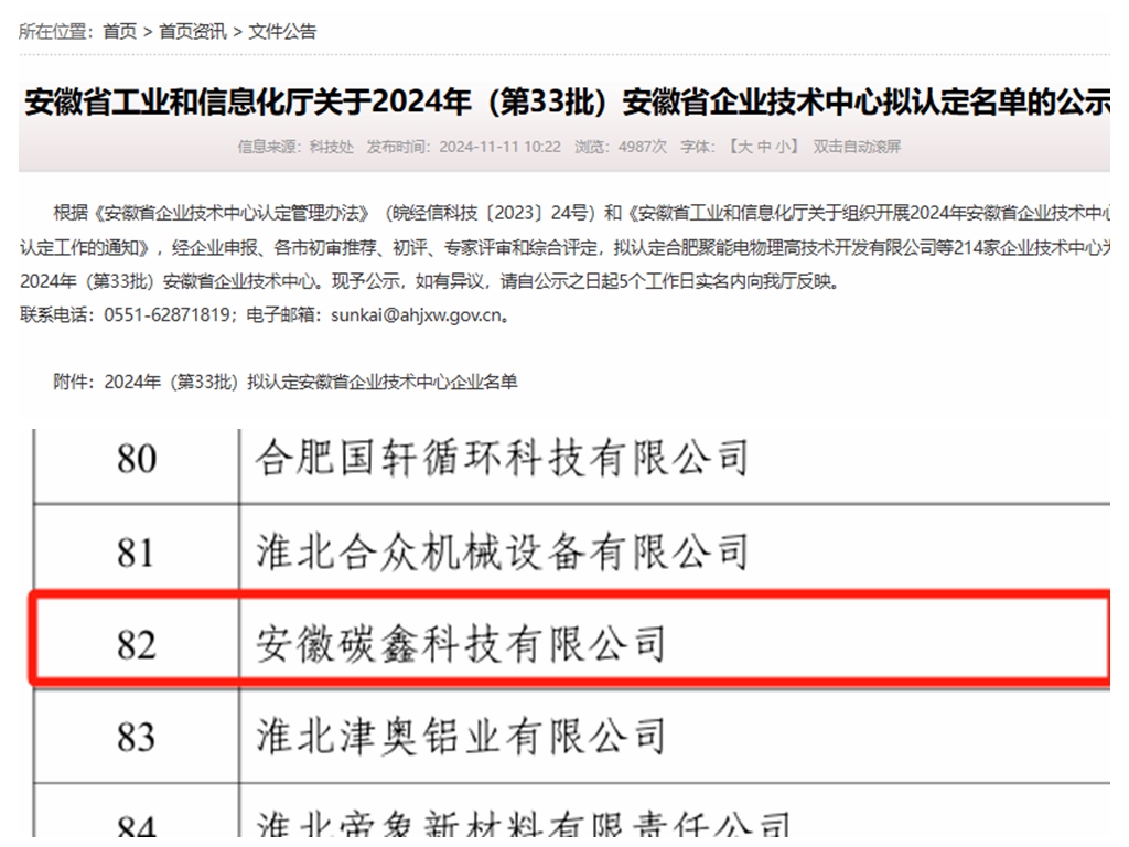 專業(yè)技術(shù)過硬、科創(chuàng)實力突出、發(fā)展?jié)摿薮蟆?,碳鑫科技公司連續(xù)通過了安徽省“專精特新”中小企業(yè)及安徽省企業(yè)技術(shù)中心認(rèn)定,公司發(fā)展含“金”量更足。