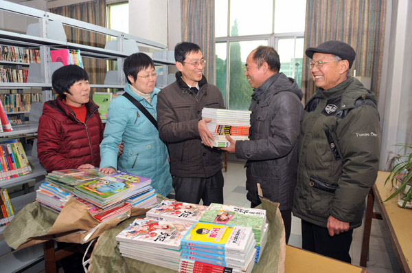 12月4日,淮北選煤廠社區(qū)流動兒童圖書站又添新書目,淮北市圖書館工作人員送來了文學、科普等600余冊嶄新的兒童讀物。在嚴峻煤炭經營形勢下,該廠在關心下一代工作中積極開拓利用社會資源,探索社會化志愿服務模式,去年與淮北市圖書館共同建立了當地首家流動兒童圖書站,職工子女不出社區(qū)就能免費看到圖書,滿足孩子們的閱讀需求。圖為:當日,該廠關工委老同志接過北市圖書館工作人員贈送的圖書。