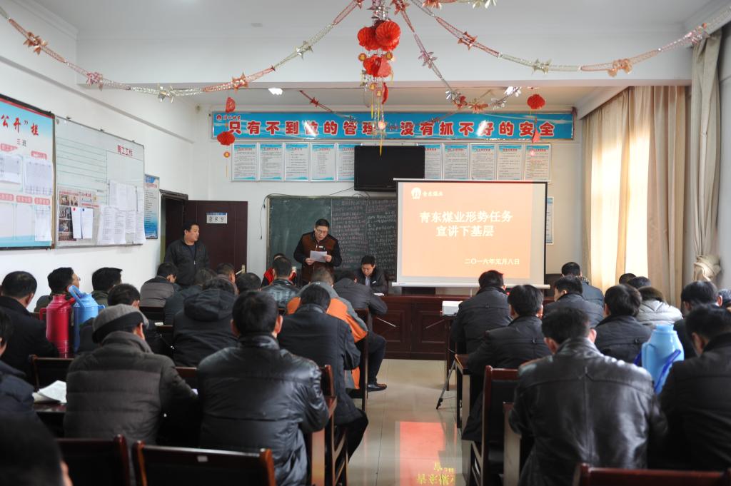 青東煤業(yè)通過(guò)多種形式開(kāi)展形勢(shì)任務(wù)宣傳,將集團(tuán)公司2016年工作會(huì)議精神傳到每一位職工,引導(dǎo)大家認(rèn)清形勢(shì),明確任務(wù),凝聚夠攻堅(jiān)克難的強(qiáng)大合力。圖為該公司宣講員到掘進(jìn)一區(qū)安全學(xué)習(xí)會(huì)進(jìn)行宣講。
