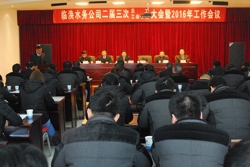 1月19日上午9時(shí),在雄壯的《國(guó)歌》聲中,臨渙水務(wù)公司二屆三次員工、工會(huì)會(huì)員大會(huì)暨2016年工作會(huì)議隆重召開(kāi)。