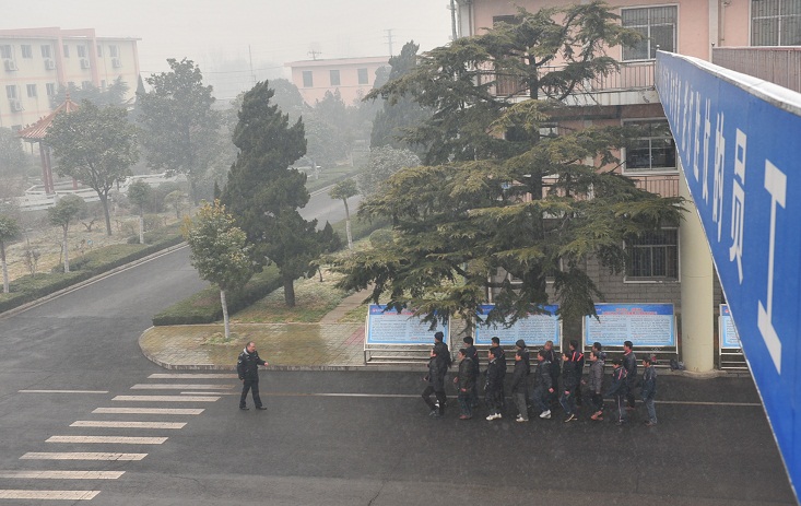 1月22日下午4時,朔石礦業(yè)東部井工業(yè)廣場上,16名“三違”人員冒雪進行軍訓(xùn)。