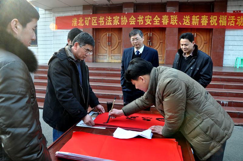2月3日,淮北礦業(yè)工會(huì)組織礦區(qū)書(shū)法家們來(lái)到朱莊礦,為職工義務(wù)寫(xiě)春聯(lián)?;顒?dòng)現(xiàn)場(chǎng),書(shū)法家們揮毫潑墨,為職工們義務(wù)寫(xiě)春聯(lián),將濃濃的祝福送到礦區(qū)的千家萬(wàn)戶(hù)。短短的時(shí)間里,地面上就鋪滿了一幅幅大紅春聯(lián),現(xiàn)場(chǎng)到處充滿了濃濃的年味。職工們紛紛表示,這樣的活動(dòng)很有意義,書(shū)法家們送祝福的同時(shí),也傳承了我們的中華傳統(tǒng)文化。一幅幅蒼勁有力的春聯(lián),寫(xiě)滿了誠(chéng)摯的平安祝愿和礦區(qū)職工對(duì)來(lái)年的期盼。