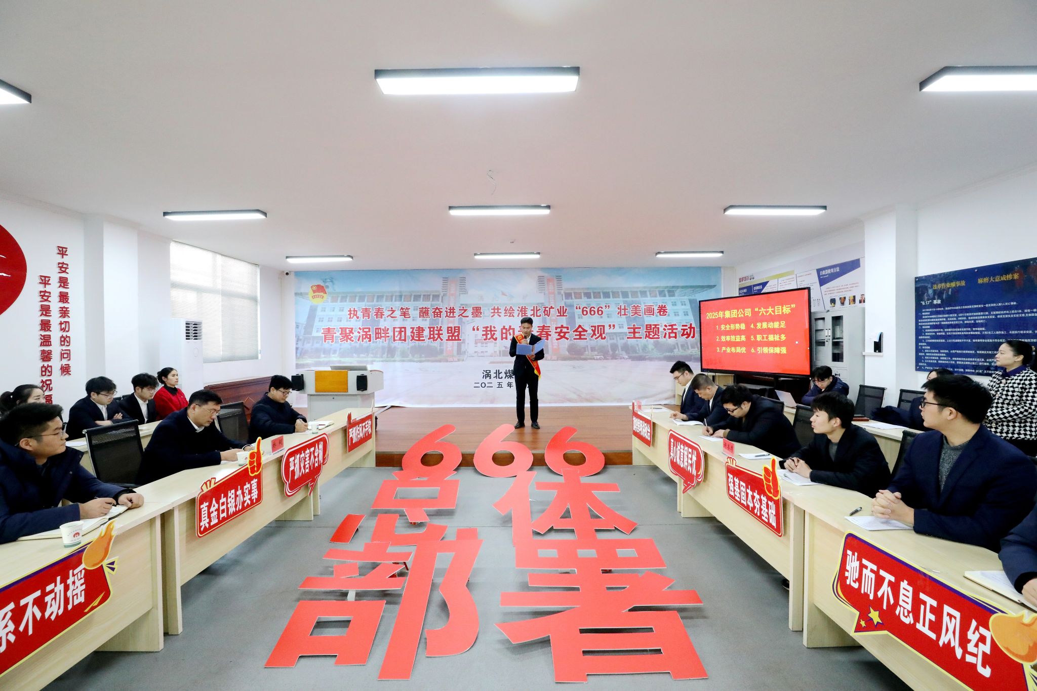 “淮北礦業(yè)集團(tuán)‘兩會’明確了‘666’年度總體部署,即實現(xiàn)‘六大目標(biāo) ’、干成‘六件大事 ’、辦好‘六件實事 ’……”活動伊始,青春宣講員向在場人員激情澎湃地解讀集團(tuán)“兩會”的核心內(nèi)容。一字一句擲地有聲,將集團(tuán)新一年的宏偉藍(lán)圖,清晰明了地鋪展在眾人眼前。