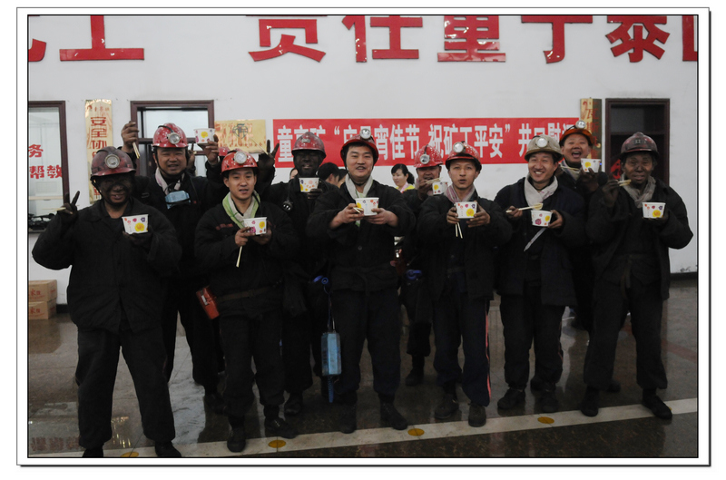 “師傅辛苦了吃點(diǎn)熱湯圓和水餃再下井,下井要注意安全哦!”2月22日,農(nóng)歷正月十五早上6點(diǎn),在童亭礦副井口女工協(xié)安員們把一碗碗熱氣騰騰的元宵、水餃端到上下井的礦工手中,讓堅(jiān)守一線的礦工兄弟們感受到濃濃的關(guān)愛和親情。圖為礦工們?cè)诨顒?dòng)現(xiàn)場(chǎng)高興的合影。