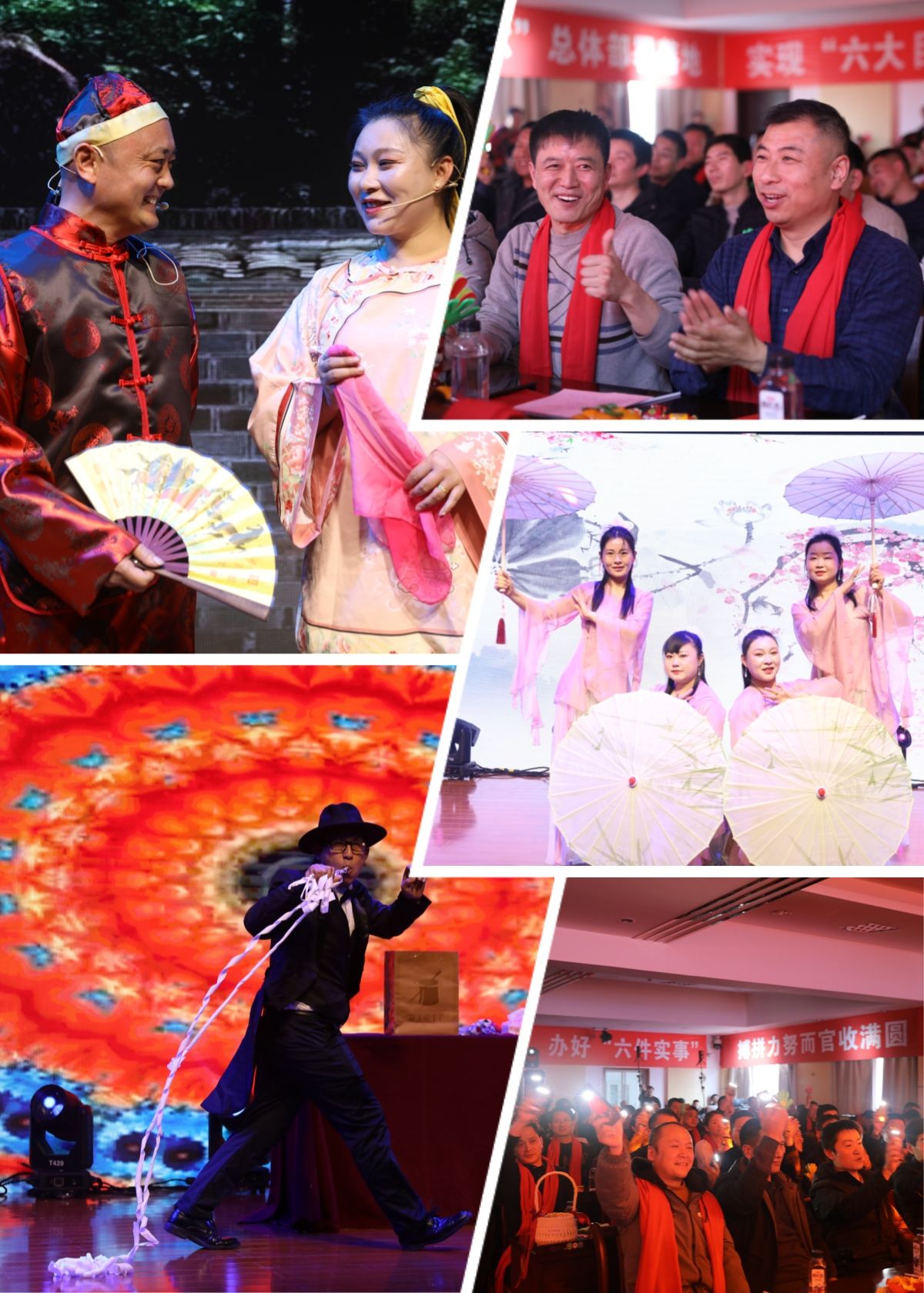 晚會(huì)在開場鼓舞《好運(yùn)連連》中拉開序幕,緊接著由該礦干部職工和兄弟礦井文藝愛好者帶來的歌舞、魔術(shù)、情景劇等精彩節(jié)目陸續(xù)登場,先后用一段段熱烈歡快的舞蹈、歡樂喜慶的歌聲和一個(gè)個(gè)不輸專業(yè)的精彩表演提前為現(xiàn)場干部職工送去了農(nóng)歷乙巳蛇年的春節(jié)祝福。伴隨著繽紛的節(jié)目,現(xiàn)場還穿插著一輪接一輪的2024下半年無“三違”人員抽獎(jiǎng)環(huán)節(jié),用一件件豐厚實(shí)惠的安全大禮犒勞遵章守紀(jì)的勞動(dòng)者,讓干部職工實(shí)打?qū)嵉胤窒戆踩凹t利”,持續(xù)激發(fā)全礦上下同心同向加油干,斤兩不欠保安全的奮斗熱情。整場聯(lián)歡會(huì)高潮迭起,現(xiàn)場干部職工在這一刻共享著獨(dú)屬“袁二人”的歡樂時(shí)光。