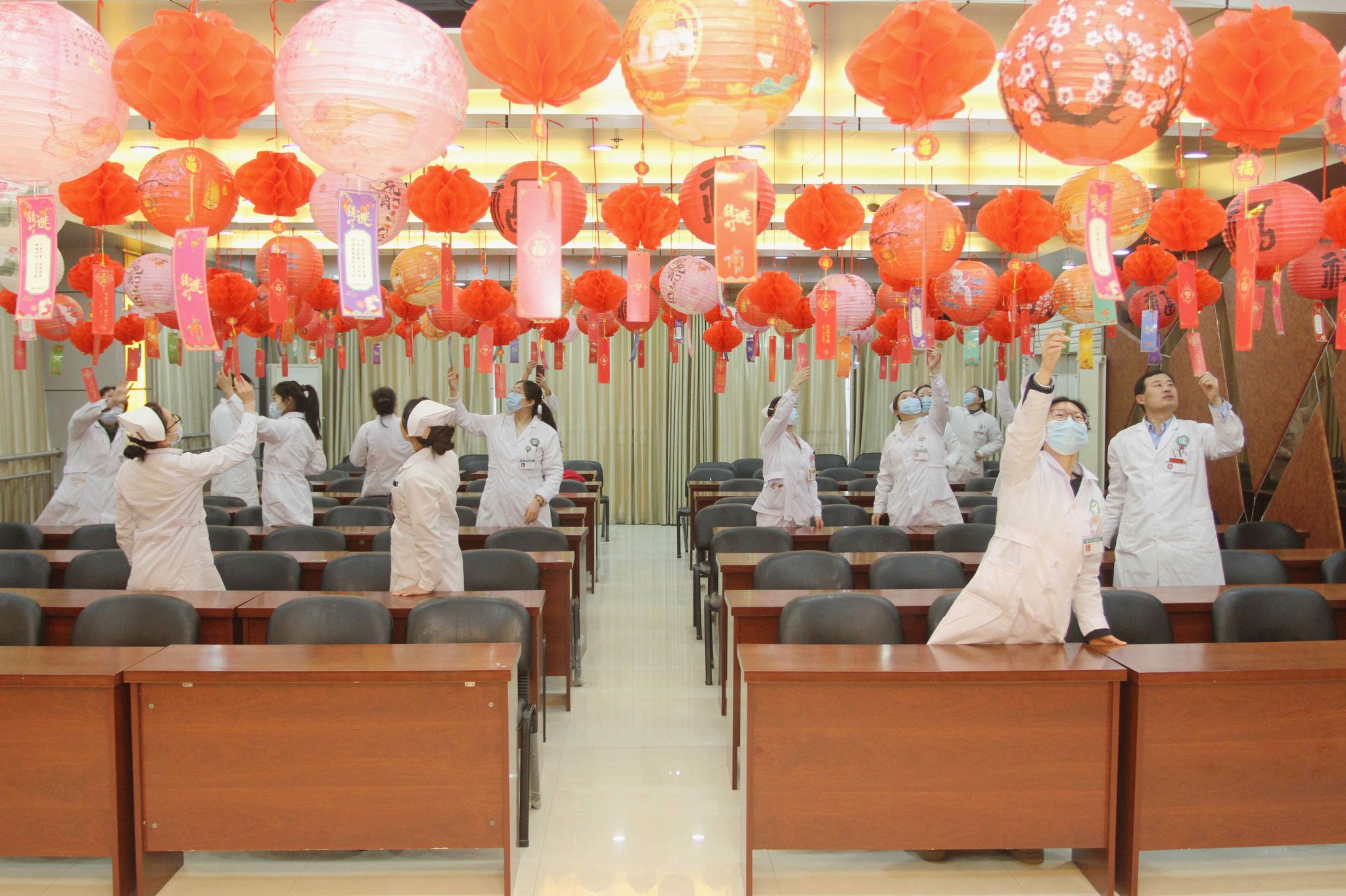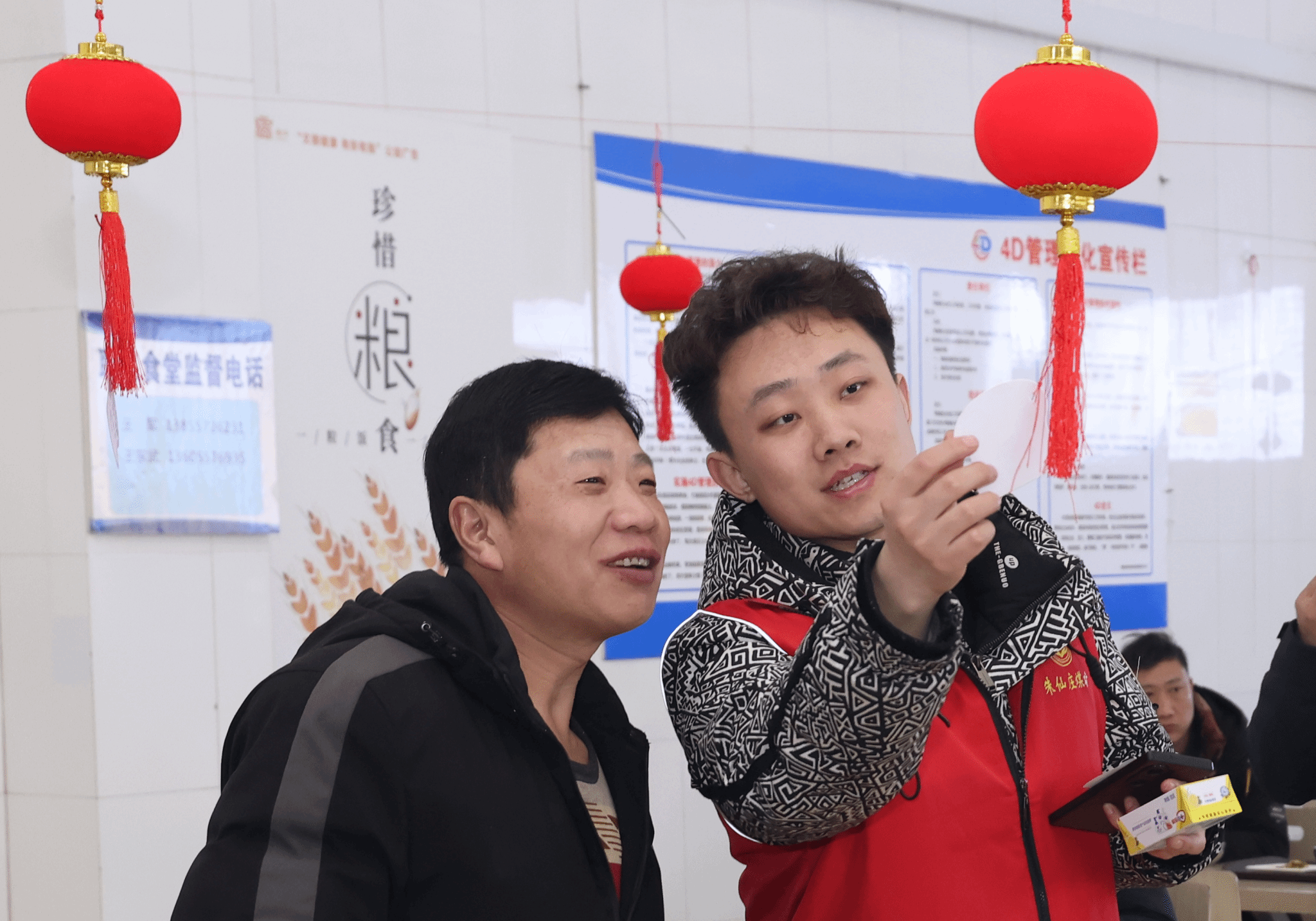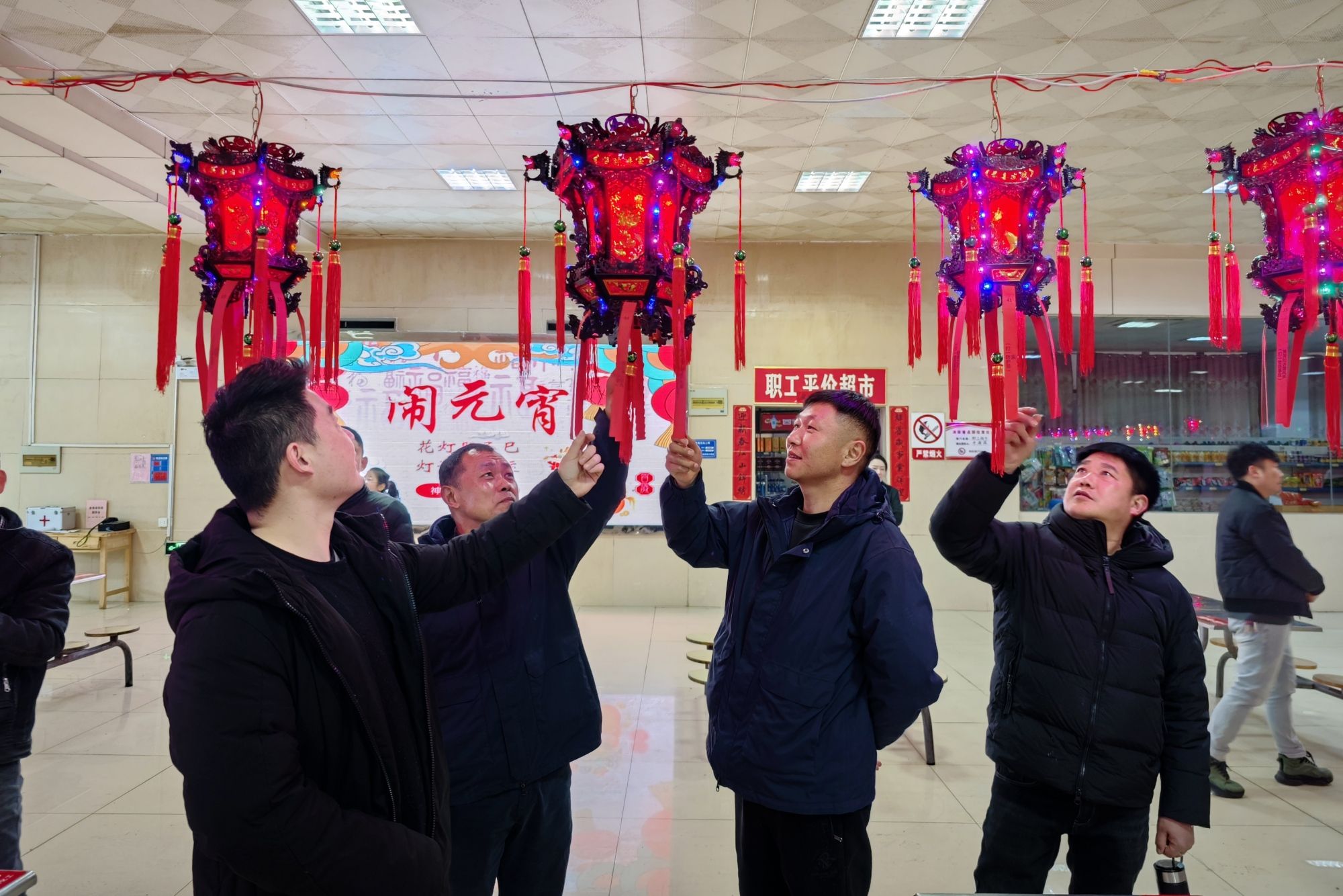 “師傅,元宵節(jié)快樂(lè)!這碗芝麻餡湯圓趁熱吃!”“猜中燈謎就能領(lǐng)洗發(fā)水啦!” 2月11日中午,朱仙莊礦職工食堂傳來(lái)一陣陣歡聲笑語(yǔ),志愿者們忙碌的身影在紅燈籠下穿梭,為前來(lái)就餐的職工送上了節(jié)日的溫暖。