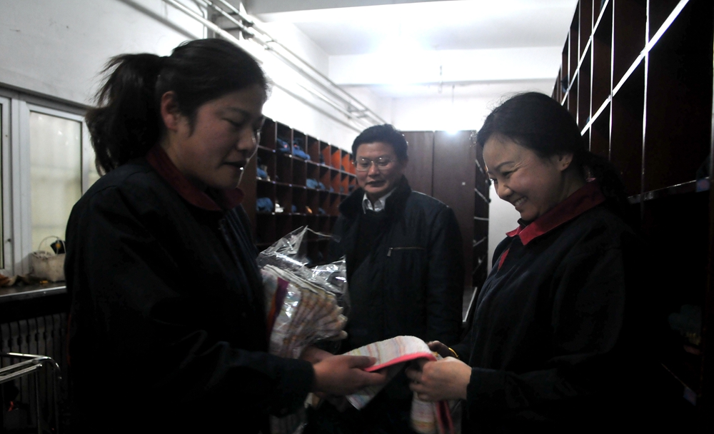 3月8日,孫疃礦工會副主席與部分女職工代表帶著毛巾、洗發(fā)水等日用品分別深入到物業(yè)公司生活服務(wù)隊(duì)、洗衣房、燈房等車間班組,慰問堅(jiān)守崗位的女職工。