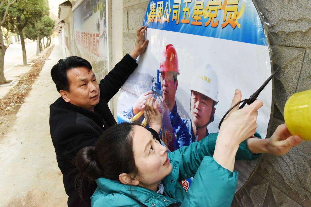 3月9日下午,雷鳴科化公司職工在張貼榮獲淮北礦業(yè)集團(tuán)公司2015年度“五星黨員”的光榮照片。公司把被評(píng)為金牌班組長(zhǎng)、優(yōu)秀技能人才等各類先進(jìn)集體和個(gè)人的照片制作成寫(xiě)真張貼在文化墻上,形成了學(xué)習(xí)先進(jìn)、崇尚先進(jìn)的濃厚氛圍。