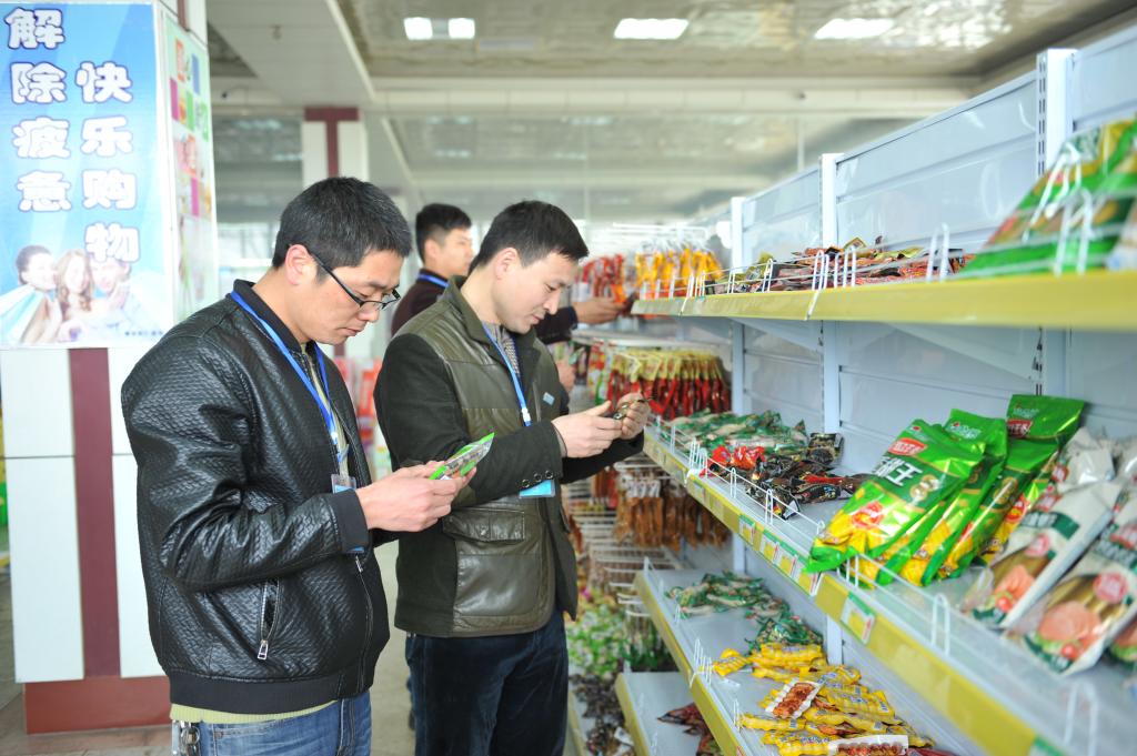 圖為該公司職工代表地面視察組到職工超市內(nèi)檢查食品質(zhì)量。