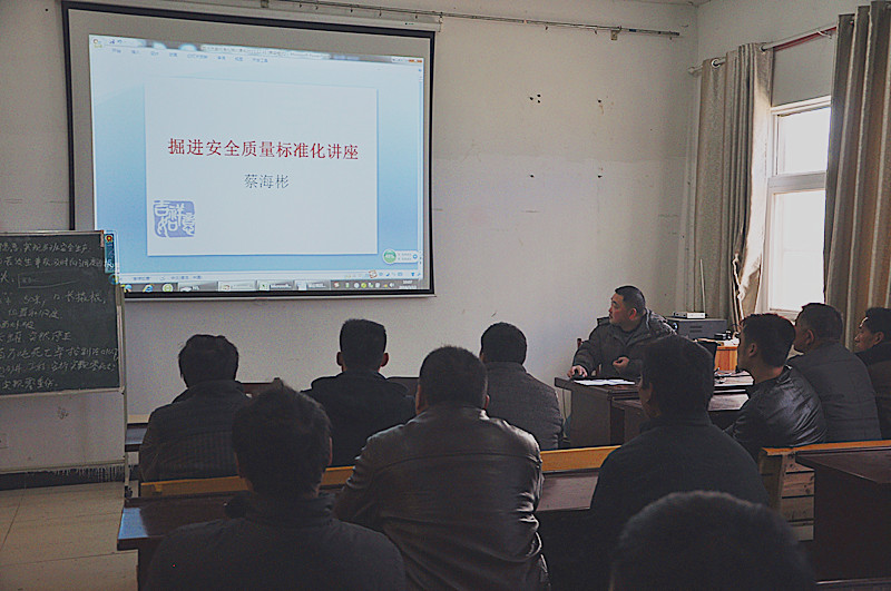 圖片為:3月11日,鄒莊礦建項(xiàng)目部在職工學(xué)習(xí)室開展掘進(jìn)安全質(zhì)量標(biāo)準(zhǔn)化宣貫活動(dòng)。