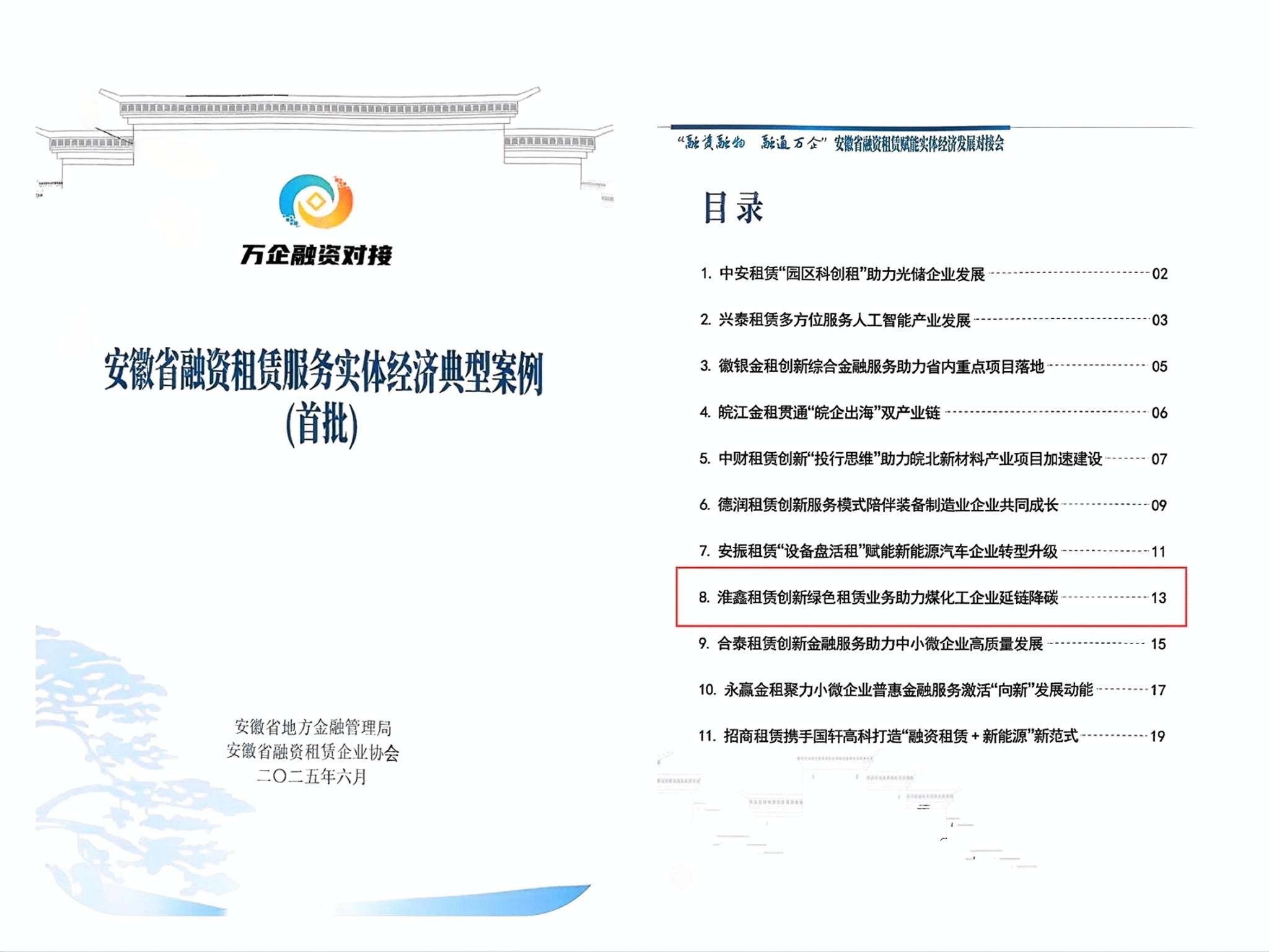 近日,從安徽省地方金融監(jiān)督管理局和融資租賃企業(yè)協(xié)會傳來佳訊,淮鑫融資租賃公司申報的“創(chuàng)新綠色租賃業(yè)務助力煤化工企業(yè)延鏈降碳”項目,成功入選安徽省首批(11個)融資租賃服務實體經濟典型案例,并在“融資融物 融通萬企”安徽省融資租賃賦能實體經濟發(fā)展對接會上進行了公開發(fā)布。此次評選旨在發(fā)揮示范引領作用、總結推廣優(yōu)秀經驗,引導融資租賃行業(yè)更好地服務實體經濟。