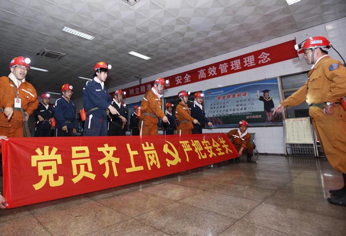 楊莊礦注意發(fā)揮共產(chǎn)黨員在安全生產(chǎn)中的模范帶頭作用,定期和不定期組織黨員集體上崗,深入井下查隱患,堵漏洞,確保了礦井安全生產(chǎn)。