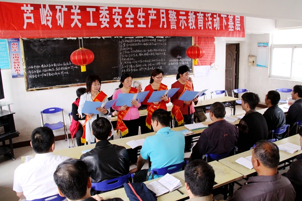 5月21日,蘆嶺礦關(guān)工委開展安全生產(chǎn)月警示教育下基層活動(dòng),教育提醒廣大職工,要珍愛生命,提高安全意識(shí),時(shí)刻繃緊安全弦,實(shí)現(xiàn)礦井的長治久安。