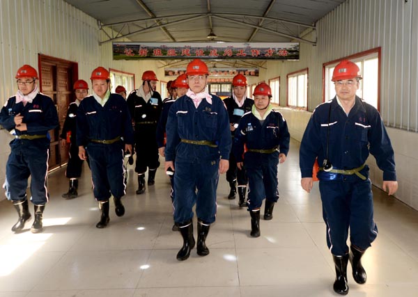 在朱仙莊礦,檢查組采取聽匯報、查資料、現(xiàn)場監(jiān)察的方式,認(rèn)真聽取了該礦防治水工作匯報。詳細(xì)了解了礦井防治水專業(yè)技術(shù)人員配備、“五含”帷幕治理設(shè)計(jì)、審批及落實(shí)情況、預(yù)測預(yù)報、探放水、雨季“三防”等工作開展情況,并在朱世奎等礦領(lǐng)導(dǎo)的陪同下,深入到井下現(xiàn)場進(jìn)行了實(shí)地查看。