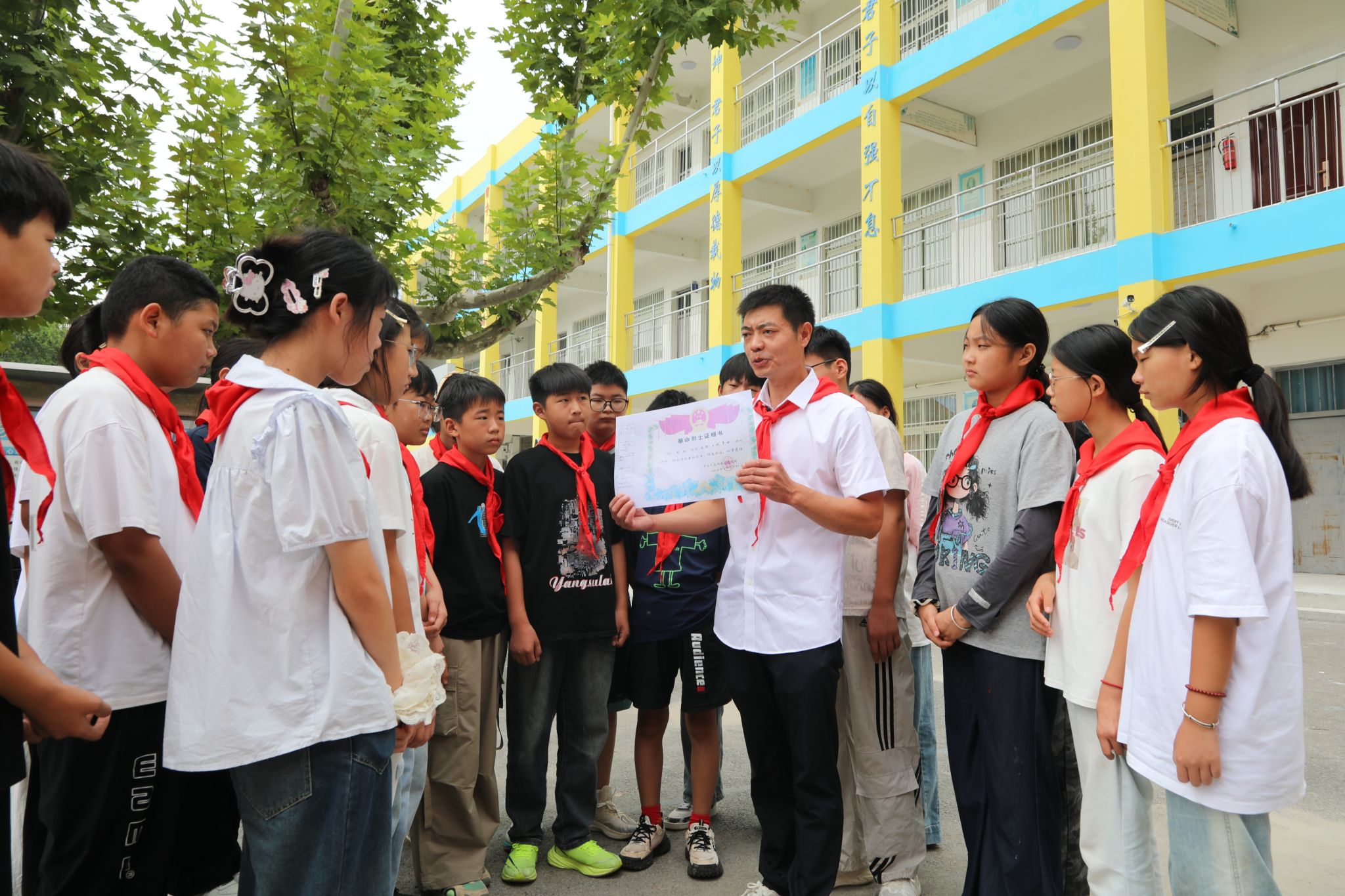 9月4日,在紀念中國人民抗日戰(zhàn)爭暨世界反法西斯戰(zhàn)爭勝利80周年大會的第二天,“中國好人”“安徽省道德模范”周楊與全民族抗戰(zhàn)犧牲的第一批共產(chǎn)黨員沈忠明烈士的曾孫沈磊應邀走進濉溪縣雙堆中心學校,開展“感恩先烈·強國有我”主題宣講活動,用樸實的語言為師生們講述了一段跨越八十年的家國情懷。