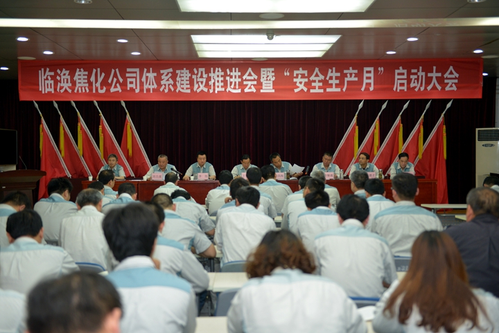 6月3日,臨渙焦化公司召開安全體系推進(jìn)會暨安全月啟動會,在家副總師及以上公司領(lǐng)導(dǎo),公司主管及以上管理人員參加了大會。按照會議議程,宣布了2016年安全生產(chǎn)月活動方案;公司各分管領(lǐng)導(dǎo)還針對學(xué)習(xí)童亭礦體系現(xiàn)場推進(jìn)會精神,結(jié)合自己負(fù)責(zé)要素內(nèi)容,就體系建設(shè)推進(jìn)過程中存在的問題、采取的舉措及下一步打算做了簡要匯報;會議通報了1至5月份生產(chǎn)經(jīng)營情況,發(fā)布了安全生產(chǎn)月倡議書,并對安全生產(chǎn)月活動提出嚴(yán)格要求。會議最后,全體參會人員在安全月主題條幅上簽了字。