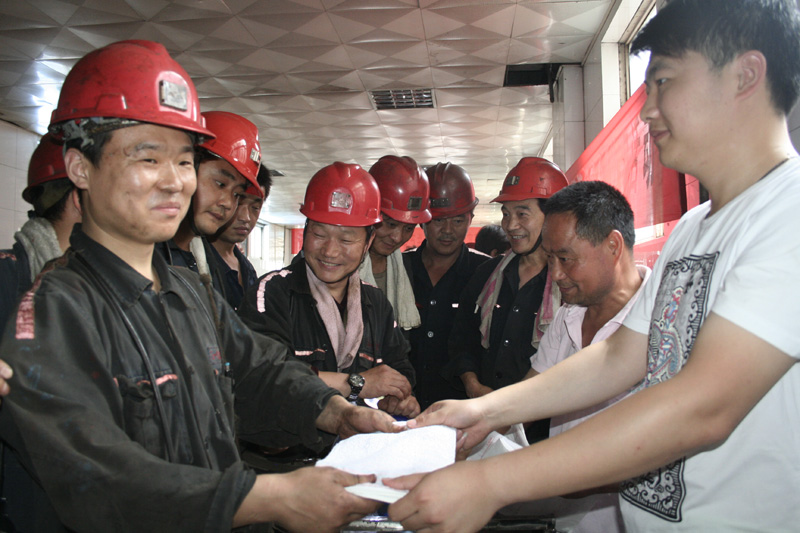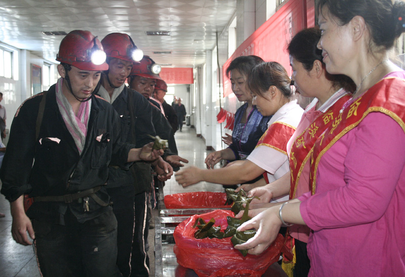 當天中午,協(xié)安員們顧不上吃飯,在張宗標和黨群工作部相關負責人的帶領下,把親手包制的香甜可口的粽子運送到副井口,發(fā)放到上下井的一線職工手中,叮囑大家過節(jié)不忘安全,時刻遵章守紀,保證安全生產(chǎn)。