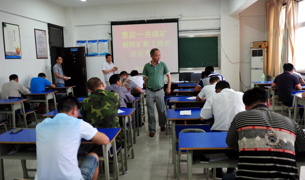 6月21日,袁店一礦在職工教育培訓(xùn)中心教室對(duì)76名新轉(zhuǎn)礦職工進(jìn)行崗前培訓(xùn)理論測(cè)試。