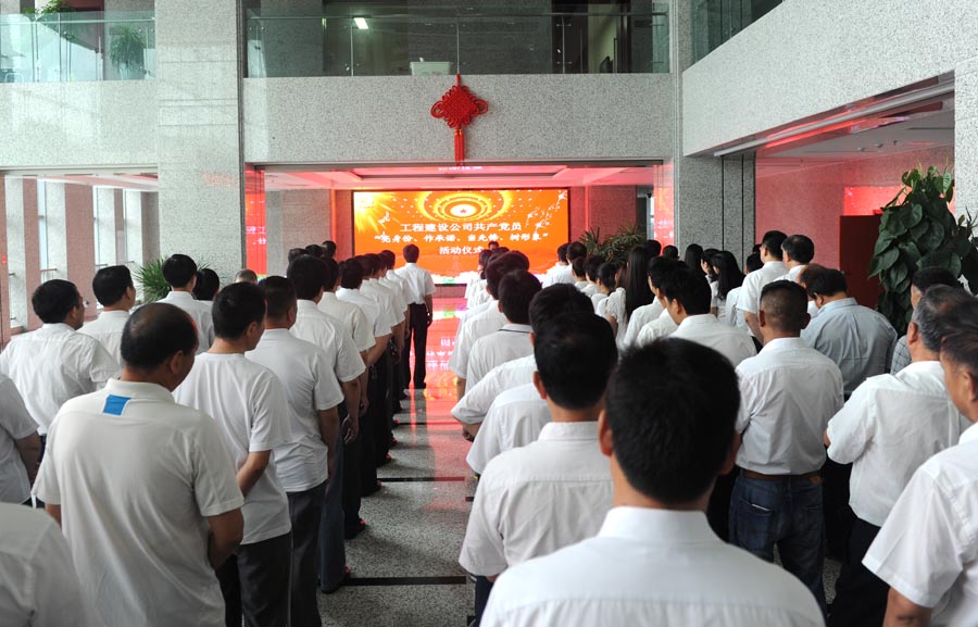 為慶祝建黨95周年,推動(dòng)“兩學(xué)一做”學(xué)習(xí)教育深入扎實(shí)開展,引導(dǎo)全體黨員立足崗位多奉獻(xiàn),充分發(fā)揮先鋒模范作用。7月1日上午,工程建設(shè)公司在一樓大廳舉行“亮身份、作承諾、當(dāng)先鋒、樹形象”活動(dòng)儀式。公司領(lǐng)導(dǎo)和機(jī)關(guān)全體黨員參加了儀式。