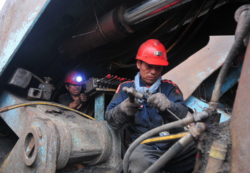 袁店二礦面對嚴(yán)峻的經(jīng)營形勢,全面聚焦雙效,從嚴(yán)控制材料費(fèi)、電費(fèi)、修理費(fèi)、安拆費(fèi)、非生產(chǎn)性支出,最大限度降低生產(chǎn)成本。圖為該礦綜采二區(qū)職工在維修液壓支架,僅此一項就為礦井節(jié)約修理費(fèi)用370余萬元。