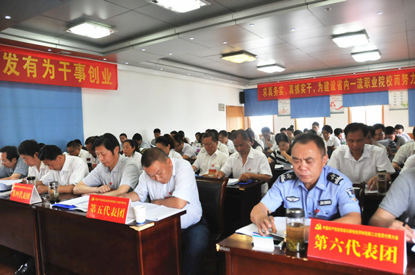 來自院屬12個(gè)支部的80名代表肩負(fù)全院242名黨員和廣大師生的重托齊聚一堂,為學(xué)院轉(zhuǎn)型發(fā)展建言獻(xiàn)策,描繪學(xué)院美好明天。會議通過了“兩委”報(bào)告決議。大家一致認(rèn)為,今后五年,是學(xué)院搶抓機(jī)遇、加快發(fā)展、推動實(shí)現(xiàn)新跨越的關(guān)鍵時(shí)期。學(xué)院各級黨組織和廣大黨員要按照本次黨代會的工作部署,認(rèn)真貫徹落實(shí)黨的十八屆五中全會以及集團(tuán)公司第五次黨代會精神,以科學(xué)發(fā)展觀為統(tǒng)領(lǐng),謀劃新發(fā)展,再譜新華章,加強(qiáng)和改進(jìn)黨的建設(shè),組織和帶領(lǐng)全院職工群眾進(jìn)一步解放思想,開拓創(chuàng)新,抓好強(qiáng)化思想引領(lǐng)、打造人才隊(duì)伍、提升培養(yǎng)質(zhì)量、優(yōu)化辦學(xué)格局、推進(jìn)管理創(chuàng)新、構(gòu)建和諧校園六件大事。會議號召,全院黨組織和全體共產(chǎn)黨員要在院黨委的堅(jiān)強(qiáng)領(lǐng)導(dǎo)下,高舉建設(shè)有中國特色的社會主義偉大旗幟,在科學(xué)發(fā)展觀的指引下,團(tuán)結(jié)帶領(lǐng)廣大黨員干部職工,解放思想,搶抓機(jī)遇,改革創(chuàng)新,扎實(shí)工作,奮力進(jìn)取,著力打造一流職業(yè)院校,為開創(chuàng)學(xué)院更加美好的明天而努力奮斗!