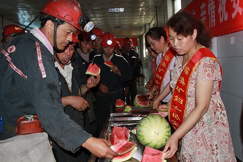 礦工會(huì)認(rèn)真貫徹落實(shí)淮北礦業(yè)《關(guān)于加強(qiáng)防暑降溫工作的通知》精神和礦防暑降溫專(zhuān)題會(huì)議精神,調(diào)動(dòng)各車(chē)間工會(huì)和全礦婦女協(xié)安員,迅速行動(dòng),開(kāi)展形式多樣的送清涼活動(dòng)。在副井口開(kāi)展了“高溫送清涼,親情囑安全”活動(dòng),組織婦女協(xié)安員冒著高溫,把西瓜運(yùn)送到井口,在職工上下井高峰時(shí)期給職工消暑解渴,并叮囑他們注意休息,按章作業(yè),確保安全生產(chǎn)。通過(guò)“送貨上門(mén)”,把清涼油、風(fēng)油精、西瓜等防暑降溫物品送到每一家基層科區(qū)和地面重點(diǎn)車(chē)間、崗點(diǎn)。配合物業(yè)科在副井口設(shè)立了茶水站,免費(fèi)向職工供應(yīng)綠豆湯、茶葉茶、白糖水,職工下井前、升井后都能隨時(shí)補(bǔ)充水分。與此同時(shí),加強(qiáng)了“兩堂一舍”管理,強(qiáng)化日常監(jiān)督檢查,最大限度的為職工創(chuàng)造清涼舒適的工作、休息環(huán)境,確保職工在高溫季節(jié)里能夠吃得好、睡得香、洗得舒心,為安全生產(chǎn)提供可靠的后勤服務(wù)保障。