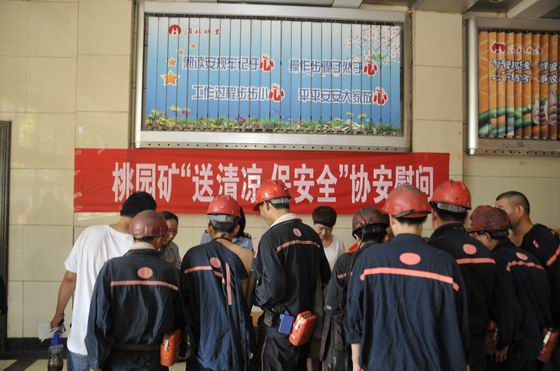 中午十二點(diǎn)半,協(xié)安員們主動(dòng)放棄午休時(shí)間,在井口大廳忙得不亦樂乎。當(dāng)一塊塊香甜可口的西瓜送到職工手中時(shí),職工們紛紛稱贊:西瓜真甜、真爽口!在為職工送去清涼的同時(shí),協(xié)安員們還叮囑礦工兄弟們,夏季高溫一定要注意勞逸結(jié)合,確保高溫期間安全生產(chǎn)。