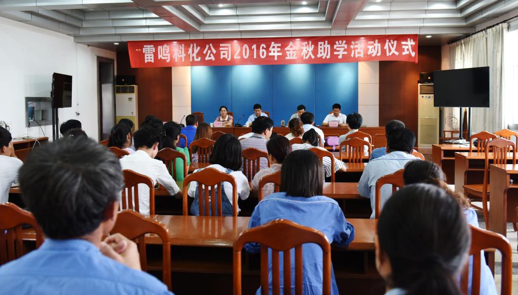 8月26日,雷鳴科化舉行“金秋助學(xué)”助學(xué)金發(fā)放儀式,公司30余名考取大學(xué)的職工子女分別給予3000元、2000元和1000元不等的資助,助學(xué)金額近4萬元。據(jù)悉,今年公司職工子女共有5人考取了研究生、19人考取大學(xué)本科、6人被??圃盒d浫。瑒?chuàng)下了近年來最好成績。
