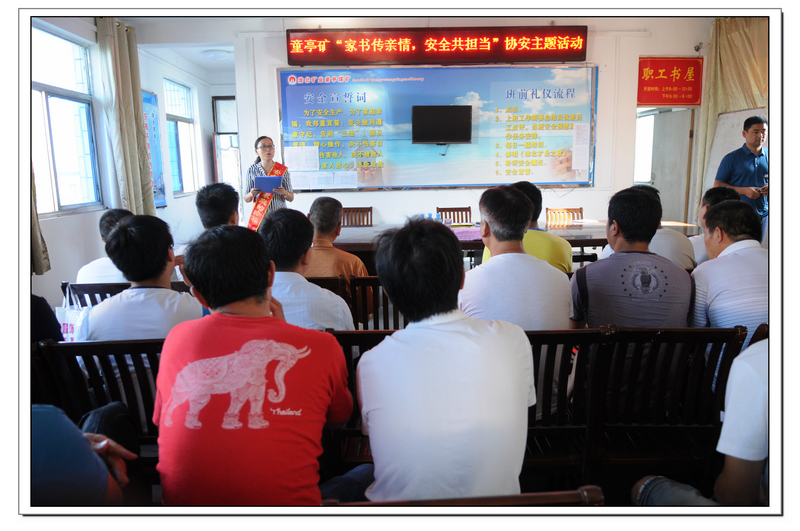“親愛(ài)的老公!為了我,為了這個(gè)家,為了睡夢(mèng)中孩子那甜蜜的微笑,請(qǐng)你一定時(shí)刻牢記‘安全第一’這幾個(gè)字,并且把它融入到你的工作、生活中去。你每一天都能高高興興上班去、平平安安回家來(lái)就是我最大的心愿……”9月2日,從童亭礦保運(yùn)二區(qū)會(huì)議室里傳來(lái)一聲聲真切的安全呼喚,這是該礦舉辦的“家屬傳親情、安全共擔(dān)當(dāng)”協(xié)安下基層主題活動(dòng)的現(xiàn)場(chǎng)。