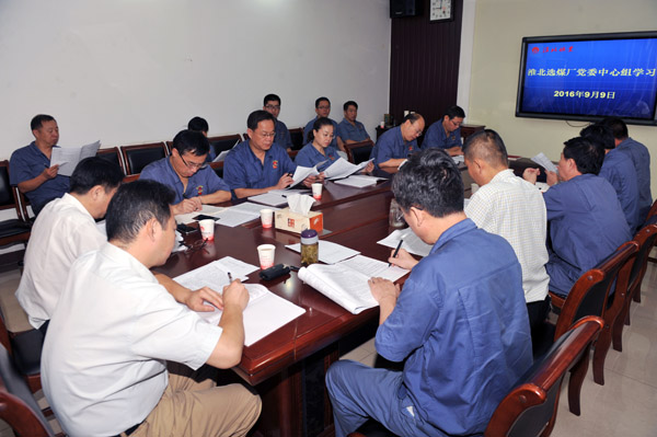 9月9日,淮北選煤廠召開黨委中心組學(xué)習(xí)會議,學(xué)習(xí)貫徹淮北礦業(yè)經(jīng)營管理“十條禁令”、“六項規(guī)定”,以及國投新集能源股份有限公司口孜東煤礦扭虧脫困經(jīng)驗做法。