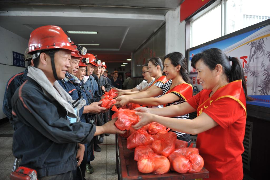9月15日,中秋佳節(jié)之際,青東煤業(yè)組織開展“慶中秋、送祝福、囑安全”慰問(wèn)活動(dòng),向堅(jiān)守在節(jié)日安全生產(chǎn)崗位上的干部職工送上象征平安、和美的月餅、蘋果等慰問(wèn)品,叮囑他們規(guī)范操作,守衛(wèi)安全。圖為協(xié)安員為下井的職工師傅送上慰問(wèn)品和節(jié)日祝福。
