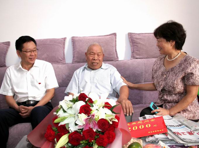 值九九重陽佳節(jié)來臨之際,淮北市人大常委會原副主任、市慈善協(xié)會會長杜文靈,市總工會副主席孫秋玲一行來到楊莊礦,在楊莊礦長李遵明的陪同下慰問全國勞模馬典周。